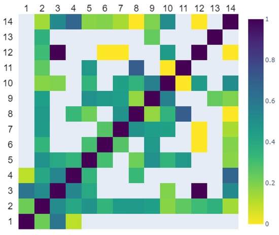 To assess the agreement in the labeling among different reviewers, the evaluations provided by each reviewer were binarized by applying a threshold of 4.5 to the annotated scale. A Cohen’s coefficient was subsequently computed between each pair of the reviewers based on the images that were reviewed by both reviewers. In cases where there were no shared images for a specific pair of reviewers, the resulting value was set as NaN (Not a Number). The mean Cohen’s value was around 0.366, indicating only a fair level of agreement between reviewers [20]. Figure 3 displays a heatmap depicting the pairwise Cohen’s values among the 14 reviewers.