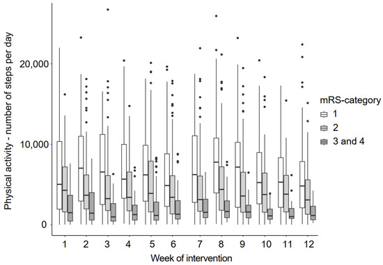 Physical activity during the intervention period. Legend: mRS = modified Rankin Scale.
