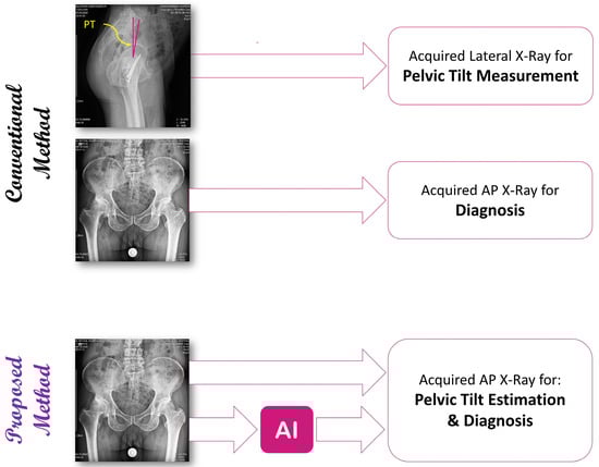 - Tyrakowski, M.; Yu, H.; Siemionow, K. Pelvic incidence and pelvic tilt measurements using femoral heads or acetabular domes to identify centers of the hips: Comparison of two methods. Eur. Spine J. 2015, 24, 1259–1264. [Google Scholar] [CrossRef] [PubMed]