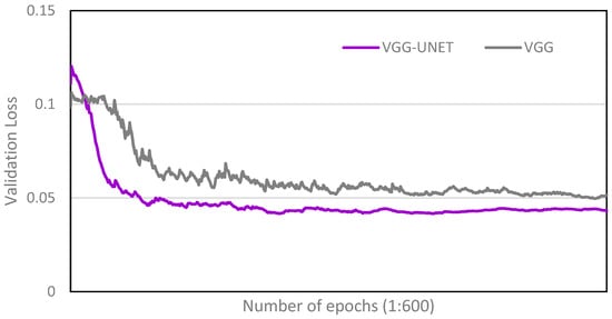 - Single-task network with learning only on the target task (VGG): The proposed network for use in the test phase, which consists of a VGG network and a light-weight convolutional network on top, was used for both training and testing. Regardless of segmentation, a deep network was used for direct learning to see if segmentation as a secondary task could be beneficial.