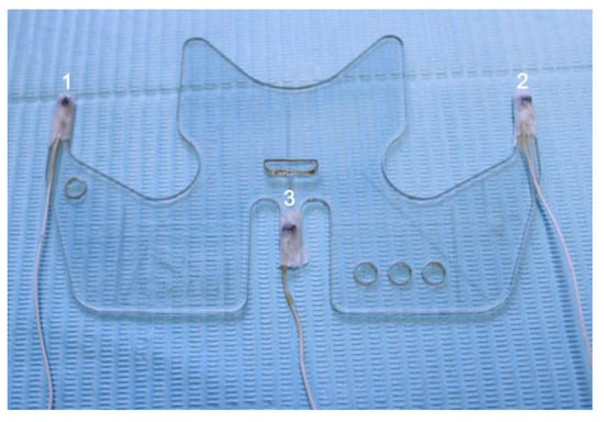Sensors right (1st), left (2nd), and central (3rd), mounted on the bite plane.