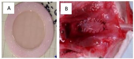 Macroscopic appearance of the tissues produced. (A) The appearance of flat human urothelial tissue after production in the laboratory. (B) A flat urothelial substitute implanted on the rabbit urethra.