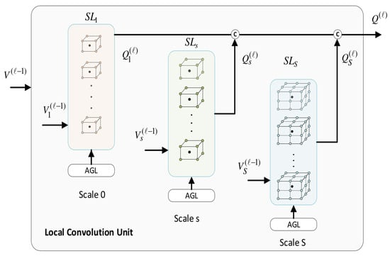 where K is the number of independent attention heads applied, while and denote the normalized attention coefficients associated with the kth attention head and its corresponding embedding matrix, respectively. In this work, we exploit the principles of the GAT-based attention mechanism in the proposed local convolutional units, with the goal to aggregate valuable contextual information from local neighborhoods, at multiple search scales (Section 5.1).