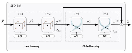 Convolutional building models: An important issue is how the local and global hidden representations of nodes are combined across the convolution layers. In this context, we propose two different structures: the cross-talk building model (CT-BM) and the sequential building model (SEQ-BM). Both models comprise four convolutional units overall, specifically, two and two units, undertaking local and global convolutions, respectively. The CT-BM (Figure 1c) performs intertwined local–global learning, with skip connections and aggregators. The links indicate the cross-talks between the two paths. The SEQ-BM, on the other hand, adopts a sequential learning scheme. In particular, local spatial learning is completed first, followed by the respective convolutions at the global level.