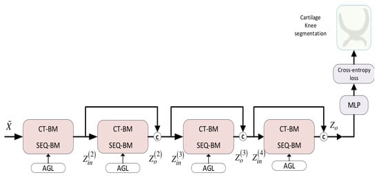Under the classical machine learning setting, knee cartilage segmentation is cast as a supervised classification task, estimating the label of each voxel from a set of handcrafted or automatically extracted features from the available set of images. Typical examples of such approaches can be found in [,]. These methods are conceptually simple but usually offer mediocre results, due to their poor generalization capabilities and the utilization of fixed feature descriptors that may not be well suited to efficiently capture the data variability.