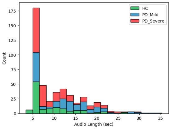 33]. In this work, we first explored the use of multi-class classification to detect PD and differentiate between various stages based on their MDS-UPDRS III scores. Part III of the MDS-UPDRS assesses motor function in Parkinson’s disease patients. We trained models to classify voice recordings into three classes. This paper also compared three DL architectures widely used in computer vision tasks. The models were trained using LMS representations derived from sustained vowel phonations from a publicly accessible dataset. Secondly, the study examined how the length of audio clips and particular vowel sounds impacted the effectiveness of these models. Additionally, previous studies segmented audio recordings before analysis but did not evaluate model performance on full recordings; in this work, we applied an ensemble method across segments to obtain overall classifications for entire segments after splitting. Finally, we employed visualization techniques such as Grad-CAM [