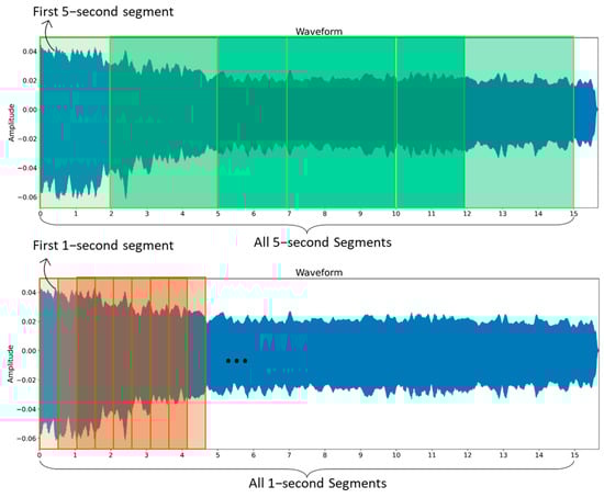 Overall, utilizing complete audio clips for training tends to improve model accuracy, especially for longer 5 s datasets, although this benefit is less pronounced on the shorter 1 s dataset (AS-1). In addition, visual inspection of bar plots in