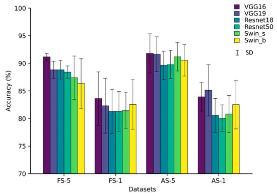 Figure 7 suggests that, for the specific task we have, the deeper architectures do not demonstrate a substantial improvement in accuracy when compared to their shallower counterparts. Furthermore, the transformer-based model showed noticeable performance gains when trained on the AS dataset. Conversely, the CNN-based models evaluated did not exhibit significant improvements from utilizing the full segmented data.