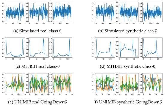 Our model’s performance is evaluated using three datasets: the Simulated dataset, the UniMiB human activity recognition (HAR) dataset [], and the MIT-BIH Arrhythmia Database [,].