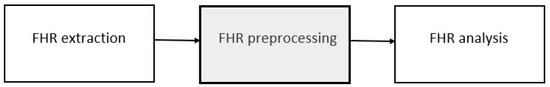 Main stages of fetal heart rate (FHR) monitoring: (1) FHR extraction; (2) FHR preprocessing after FHR has been obtained; and (3) FHR analysis.