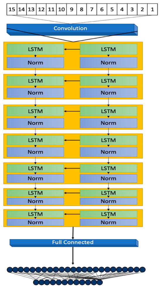 The 7-layer Long Short-Term Memory (LSTM) model, illustrated in