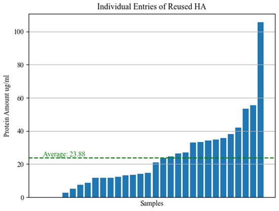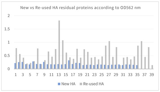 Figure 9. Difference in the OD562 nm values between new and reused HA samples.