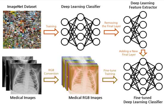 - Kim, H.E.; Cosa-Linan, A.; Santhanam, N.; Jannesari, M.; Maros, M.E.; Ganslandt, T. Transfer learning for medical image classification: A literature review. BMC Med. Imaging 2022, 22, 69. [Google Scholar] [CrossRef]