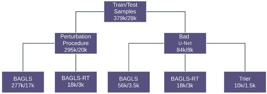 18], allowed us to explore the model’s response to various noise and distortion sources, simulating real-world conditions. Upon evaluating the trained model on BAGLS, BAGLS-RT, and the Trier dataset, deviations from ground truth annotations were observed, generating diverse erroneous segmentations for further analysis. The resulting training dataset, augmented from the Trier dataset, exhibited a mean IoU of 0.55 with a standard deviation of 0.3, while the test dataset, comprising samples from multiple datasets, displayed a mean IoU of 0.58 with a standard deviation of 0.3. The diversity of error source due to different data augmentations should result in a more diverse set of errors occurring during inference, thereby generating a suitable dataset to learn to detect faulty segmentations.
