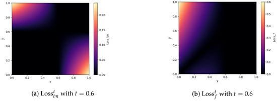 For training, two terms were used to concentrate on two aspects. As visible from the heat map, the term in (b) puts a bigger emphasis on cases below the acceptance rate of t = 0.6. On the other hand, (a) is making the network concentrate on cases that are accepted or declined incorrectly, i.e., wrongly above or below t. The black areas are zero and are when the prediction is correctly identified as above or below the acceptance rate t = 0.6).