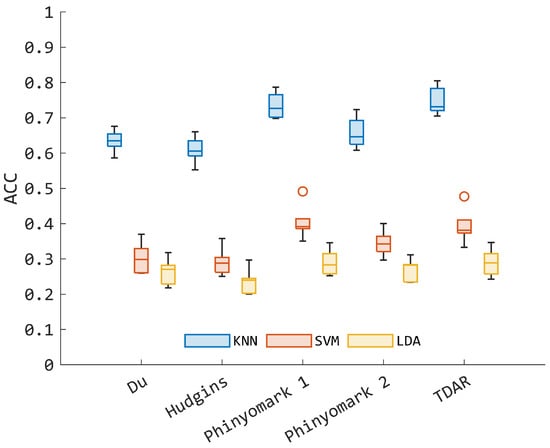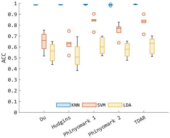 - Phinyomark, A.; Quaine, F.; Charbonnier, S.; Serviere, C.; Tarpin-Bernard, F.; Laurillau, Y. EMG feature evaluation for improving myoelectric pattern recognition robustness. Expert Syst. Appl. 2013, 40, 4832–4840. [Google Scholar] [CrossRef]