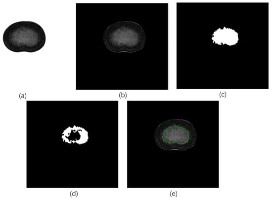 The basic idea of region growing is to gather pixels with similar properties to form a region. Specifically, a seed pixel is found as the starting point and then the seed pixel and the pixels in the surrounding neighborhood that have the same or similar properties to the seed pixel are merged into the region where the seed pixel is located until no pixel satisfies the criterion (Figure 4). The region growing is terminated, thus achieving the extraction of the target [,].