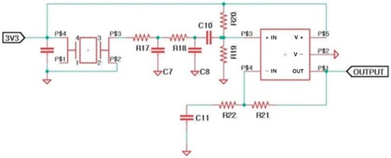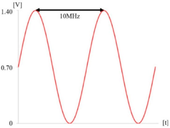 An electronic circuit was developed to generate the BE signal, as shown in Figure 4 [,,]. Subsequently, this circuitry was embedded in a toothbrush. A stainless-steel electrode was selected because of its corrosion resistance and conductivity, which are essential for supplying an electric field. The signal for the BE was output through the two electrodes.