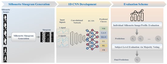 - We develop a 1D CNN model that can integrate multiple silhouette sinogram signals and train them together to enhance the network’s understanding of gait abnormalities through assisted knowledge learning.
