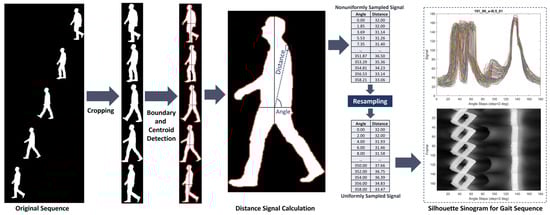 - Novel silhouette sinogram signals are generated for each silhouette image by computing the angle and distance between the centroid and all boundary points, facilitating the extraction of prominent representations of relative variations in pathological gait patterns.