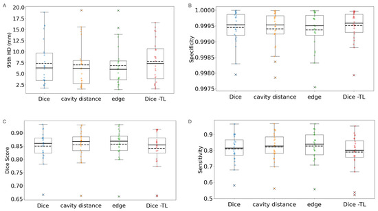 | Transfer Learning (TL) + Spatial Weighting | TL + Dice Loss | TL + Cavity Loss | TL + Edge Loss | no TL + Dice Loss |