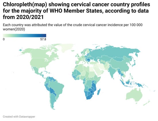 - Complete Cervical Cancer Profile Sets. Available online: https://www.who.int/publications/m/item/cervical-cancer-country-profiles (accessed on 13 April 2024).