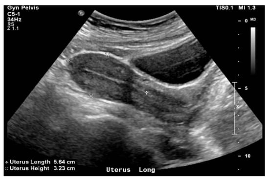 During the transabdominal ultrasound (TAUS) procedure, the bladder is filled with physiological saline to optimise picture quality and place the uterus vertically. The volume of saline put into the bladder might range from 200 mL to 500 mL []. In individuals with an anteverted uterus, the bladder will be infused with a greater volume of saline, namely 400–500 mL, in order to reposition the uterus into a vertical orientation. The bladder fullness is determined based on the detected location of the uterus during the ultrasound examination. The pictures acquired by ultrasound are in the axial and sagittal orientations.
