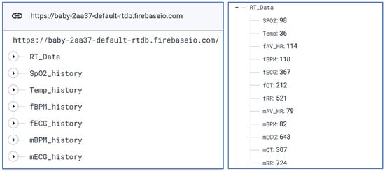 Figure 9 provides an illustration of both the data structure and the real-time data within our Firebase database. The ‘RT_DATA’ table is designed to present the information obtained from the Wi-Fi module on a real-time basis, refreshing itself every minute. Concurrently, the data gathered each minute is systematically archived in the ‘*_history’ table. These stored data are subsequently utilized for display purposes in the ‘History’ section of our application.
