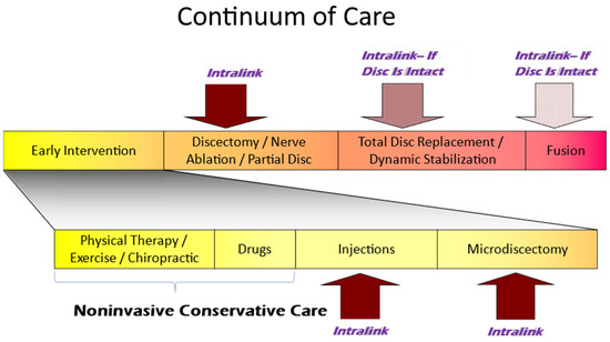 - Lorio, M.P.; Tate, J.L.; Myers, T.J.; Block, J.E.; Beall, D.P. Perspective on Intradiscal Therapies for Lumbar Discogenic Pain: State of the Science, Knowledge Gaps, and Imperatives for Clinical Adoption. J. Pain Res. 2024, 17, 1171–1182. [Google Scholar] [CrossRef] [PubMed]