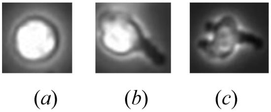 The experimental materials for this study were supplied by Professor Jue Shi from Hong Kong Baptist University. The natural killer cells utilized in this study were extracted from fresh human blood, provided by the Hong Kong Red Cross, and were sustained and activated outside the body using Interleukin-2 (IL-2). The cancer cells chosen for the study were U-2 OS, originating from bone cancer. Cell imaging was conducted using a Nikon TE2000-PFS inverted microscope sourced from Nikon Corporation, Tokyo, Japan, capturing images every 30 s with a motorized stage and a 20X objective (NA = 0.95). The microscopic images had a resolution of 2048 × 2048 pixels, each pixel representing 0.65 μm in reality. A series of experiments were conducted: 1. The migration of natural killer cells in an environment devoid of cancer cells was observed, measuring cell performance at 30 °C and 37 °C, with an average of about 80 cells per frame, and each experimental set observed 601 frames, repeated three times; 2. The movement of natural killer cells in a cancer cell environment was observed, where the cancer cells were fixed in the culture dish, and their positions remained almost unchanged, each frame containing about 220 cells, totaling 1080 frames, also repeated in three sets. The images from the second experiment can be seen in Figure 2. Throughout the experiments, no cell death occurred, and the natural killer cells maintained good motility. For detailed specifics of the experiments, please refer to Professor Jue Shi’s paper [,].