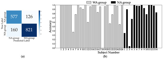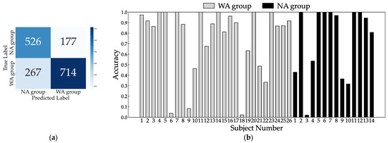 Confusion matrix (a) and individual inference results (b) of LOOCV using all sensors.