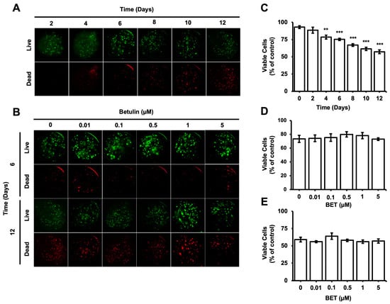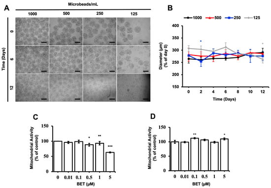 3.3. Effect of BET on Cell Viability of hFOB 1.19 Cell-Loaded AlGel Microbeads