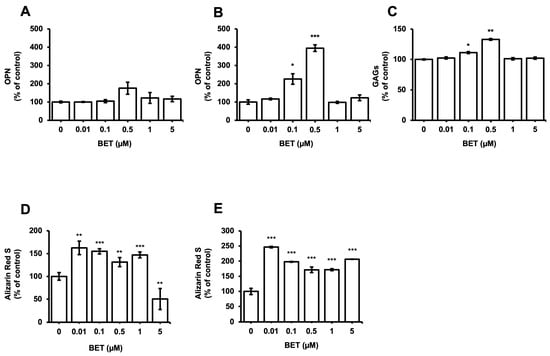 3.5. Influence of BET on the Expression of Osteogenic Markers
