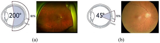 - Kumar, V.; Surve, A.; Kumawat, D.; Takkar, B.; Azad, S.; Chawla, R.; Shroff, D.; Arora, A.; Singh, R.; Venkatesh, P. Ultra-wide field retinal imaging: A wider clinical perspective. Indian J. Ophthalmol. 2021, 69, 824–835. [Google Scholar] [CrossRef] [PubMed]
