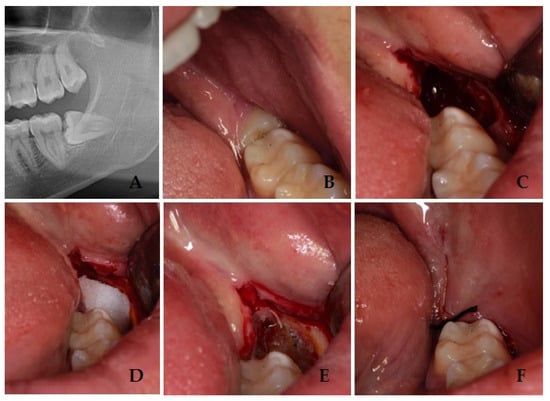 - Azab, M.; Ibrahim, S.; Li, A.; Khosravirad, A.; Carrasco-Labra, A.; Zeng, L.; Brignardello-Petersen, R. Efficacy of secondary vs primary closure techniques for the prevention of postoperative complications after impacted mandibular third molar extractions: A systematic review update and meta-analysis. J. Am. Dent. Assoc. 2022, 153, 943–956.e48. [Google Scholar] [CrossRef] [PubMed]