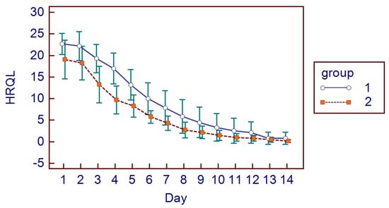 | HRQL | 9.43 ± (9.49) | 6.23 ± (7.42) |