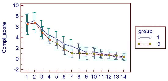 | MP | 2.75 ± (1.86) | 3.5 ± (2.57) |
