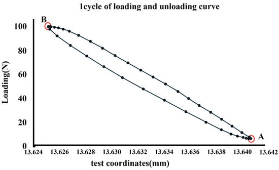 The specimen was placed in a fatigue/durability testing machine (ElectroPuls E1000, Instron, Norwood, MA USA), such that a load was applied perpendicular to the implant axis. The test conditions were set using a dedicated fatigue testing machine operating software package (Instron CONSOLE, Instron). One cycle involved applying a load of 100 N at a ramp speed of 600 N/s and unloading it to 5 N, for 200,000 cycles under the same loading and unloading conditions. The data acquisition rate was 100 Hz and the position data were mechanically calibrated for each cycle.