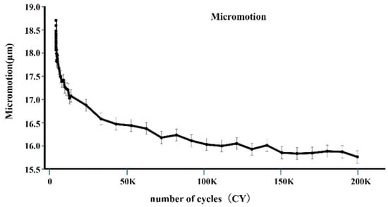 The vertical axis represents the average value of micromotion, and the horizontal axis represents the number of cycles. At the initial stage, micromotion significantly decreased.