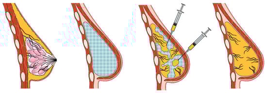 - Agha, R.A.; Fowler, A.J.; Herlin, C.; Goodacre, T.E.E.; Orgill, D.P. Use of autologous fat grafting for breast reconstruction: A systematic review with meta-analysis of oncological outcomes. J. Plast. Reconstr. Aesthetic Surg. 2015, 68, 143–161. [Google Scholar] [CrossRef] [PubMed]