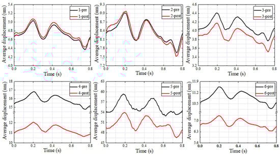 Preoperative and postoperative average displacement of the venous vessel in the SSWD domain in the whole cardiac cycle of each patient.