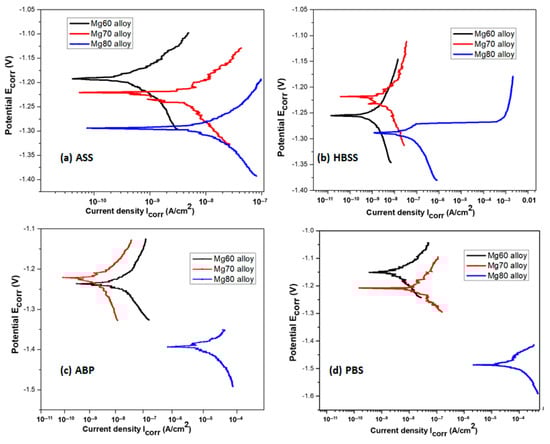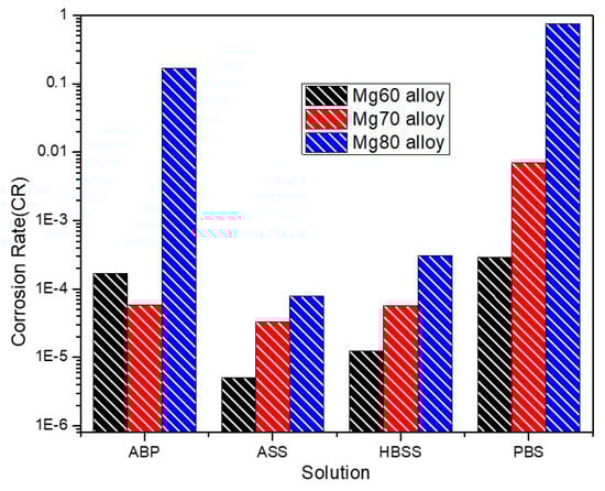 - It is interesting to note that in the ABP solution, the Mg70 alloy displayed a high corrosion resistance value (5.84 × 10−5 mm/year) compared to the Mg60 alloy (1.68 × 10−4 mm/year);