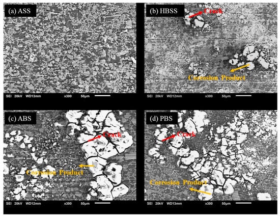 - The Mg80 alloy displayed high corrosion rates (range from 7.97 × 10−5 to 0.74 mm/year) and severe surface degradation, with deeper cracks observed on the alloy surface when immersed in all four solutions, leading to higher metal dissolution. This can be attributed to the high Mg content and the formation of intermetallic phases, such as Al6Mn, Al2CuMg, and Al2Cu phases;