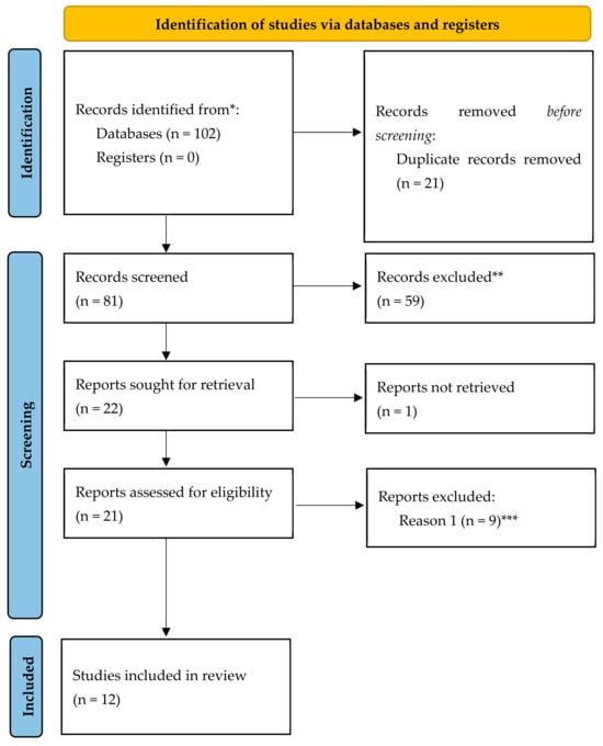 The review protocol is registered on the PROSPERO website (http://www.crd.york.ac.uk/PROSPERO/) and its registration number is CRD42024509239 (accessed on 12 February 2024).