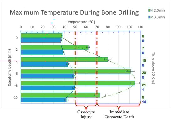 - Abouzgia, M.B.; James, D.F. Temperature rise during drilling through bone. Int. J. Oral Maxillofac. Implant. 1997, 12, 342–353. [Google Scholar]