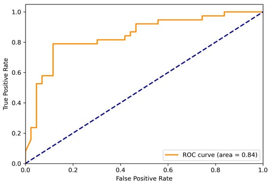 The ensemble models for each view achieved a mAP0.5 of 0.797 for the transverse view and 0.716 for the longitudinal view. The entire pipeline, constructed using the XGBoost ensemble, reached an AUROC of 0.84 (95% CI: 0.75–0.91). It achieved 84% sensitivity and 63%specificity in classifying benign versus malignant thyroid nodules (Figure 3). Our model obtained a negative predictive value of 80%, with an F1 score of 0.76. We calculated the cross-sectional nodule area and compared the model’s prediction performance on the lower and higher quartiles of nodule size. We found that the model had approximately similar performances, AUC = 0.81 and AUC = 0.82 for lower and higher quartiles, respectively. This analysis underscores the robustness of our deep-learning model in assessing thyroid nodules of varying sizes.