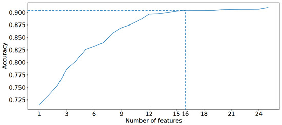 Our proposed Algorithm 1 seeks to identify the optimal feature group by selecting the feature importance threshold. It then returns the most suitable feature group with the highest or near-highest accuracy and the smallest standard deviation of accuracy. This approach proposes reducing the number of analysis features from 26 to 16, thereby enhancing model performance.