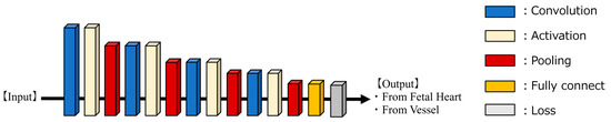 To address this issue, it is important to utilize DUS signals, which serve as the basis for calculating heart rate. Midwives refer to DUS sounds for positioning when monitoring FHR, and since discernment methods are also described in guidelines, directly utilizing DUS signals may offer the potential to determine whether the fetal heart has been captured [13]. In studies utilizing ultrasonography, it is well-known that characteristic DUS figures can be obtained for each observed blood vessel or organ [24,25,26,27,28,29]. Therefore, there may be differences in the DUS signal between cases in which the fetal heart is captured and those in which it is not. While calculating the displayed heart rate, various pieces of information contained in the DUS signals, such as signal duration, amplitude, and constituent frequencies, are discarded. Additionally, because these data were not recorded by a device, research in this area has not yet progressed. We selected AI as the classification method for the DUS signals because of its well-established efficacy for sound [30,31].