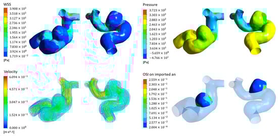 - Suzuki, T.; Stapleton, C.J.; Koch, M.J.; Tanaka, K.; Fujimura, S.; Suzuki, T.; Yanagisawa, T.; Yamamoto, M.; Fujii, Y.; Murayama, Y.; et al. Decreased wall shear stress at high-pressure areas predicts the rupture point in ruptured intracranial aneurysms. J. Neurosurg. 2019, 132, 1116–1122. [Google Scholar] [CrossRef] [PubMed]