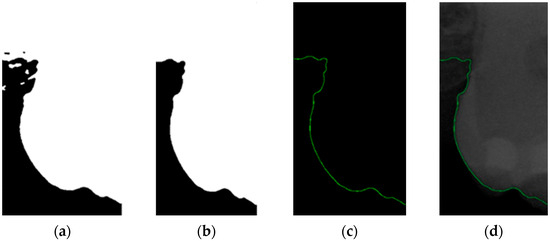 This study utilized morphological operations to improve the success rate of edge detection. Morphological operations are fundamental operations in mathematical morphology, which are primarily used to enhance specific features of images such as edges, shapes, and structures that are widely applied in image processing. Opening and closing are the two main operations, and their formulas are as shown in (2) and (3). These operations are based on combinations of dilation and erosion. The opening operation removes small objects or spots from an image, while the closing operation fills in small holes or gaps in an image. The results of morphological operations are shown in Figure 8b.